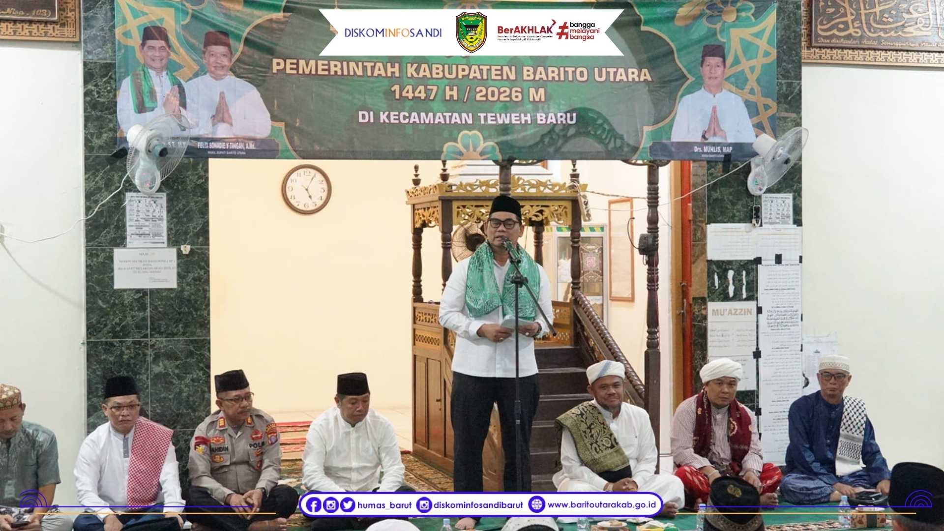 Kegiatan tersebut dihadiri langsung oleh Bupati Barito Utara H. Shalahuddin yang didampingi Wakil Bupati Barito Utara Felix Sonadie Y. Tingan serta Sekretaris Daerah Kabupaten Barito Utara Muhlis. Turut hadir unsur Forkopimda, kepala perangkat daerah lingkup Pemerintah Kabupaten Barito Utara, Camat Teweh Baru, tokoh agama, tokoh masyarakat, serta jamaah.(Ummi/Grescela / Barut - Foto: Wawan_Diskominfosandi)/Edt:UL