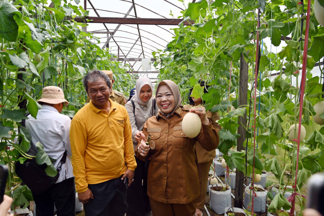 Hj. Nurhidayah bersama pengelola dan para petani juga melaksanakan panen melon secara simbolis sebagai bentuk dukungan pemerintah daerah terhadap pengembangan pertanian berbasis masyarakat. Kehadiran pemerintah daerah diharapkan dapat memberikan motivasi kepada para petani untuk terus meningkatkan kualitas dan hasil produksi pertanian.